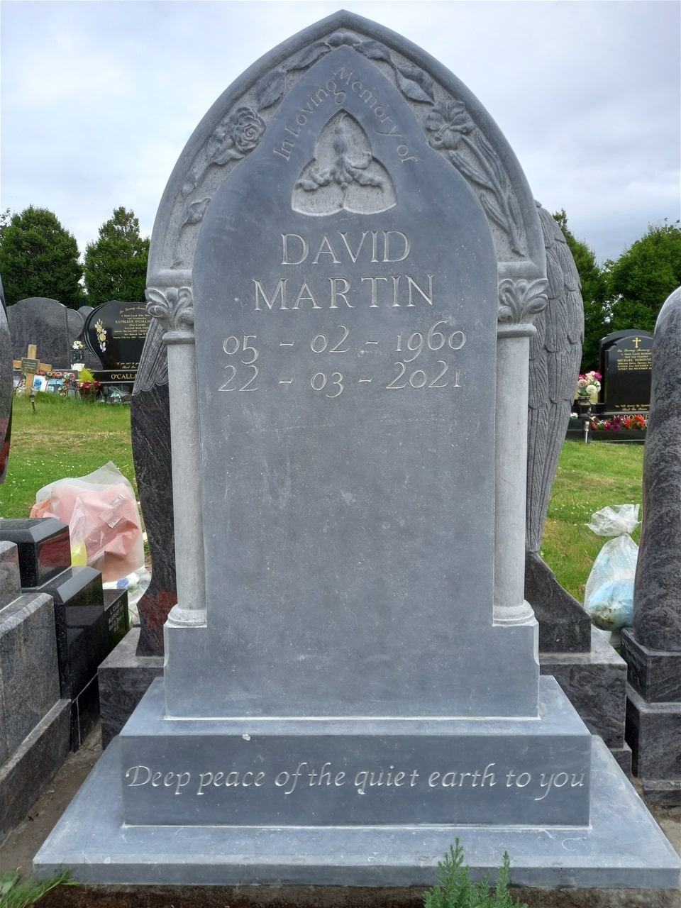 James uses locally quarried limestone to create his hand carved limestone memorials including Blue Limestone quarried in County Kilkenny and Portland Stone quarried on the Isle of Portland in Dorset, England.